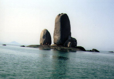 简要说明:福建省平潭岛为我国第五大岛,在平潭海峡中有两块高达33米的花岗岩海蚀柱矗立,犹如双帆扬起远航大海,为世界级海蚀柱地貌奇观。
