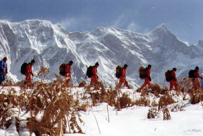 简要说明:南迦巴瓦峰是喜马拉雅山东端最高峰,海拔7 787米,世界第一大峡谷——雅鲁藏布大峡谷围绕它而流,高峰峡谷,地形陡峭,这是1983年4月南迦巴瓦登山科考队员和国家登山队员一起向南迦巴瓦峰挺进。