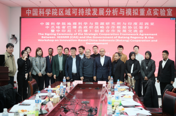 2026 年 1 月 23 日,中国科学院地理科学与资源研究所与印度尼西亚中爪哇省巴塘县政府在北京正式签署战略合作框架协议,并同期举办中印尼(巴塘)创新合作发展交流会。此次活动标志着中印尼在推进命运共同体建设背景下,科技创新与产业合作迈入深度协同的新阶段,为两国创新务实合作树立了新典范。