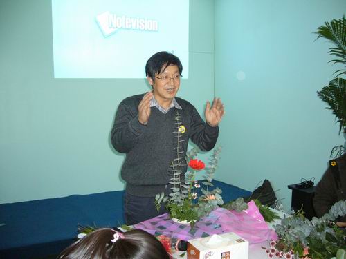 首先,刘老师通过实物和图片,让大家了解插花的基本知识,如什么是插花、插花工具种类用法、容器的选择、中日插花的异同、插花基本技法等。