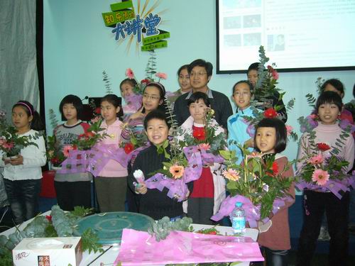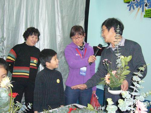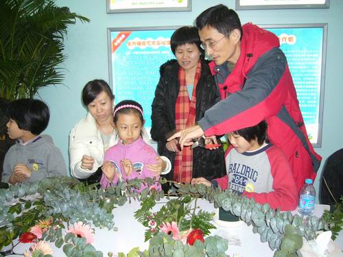 2010年12月18日下午2点,小朋友及家长共30余人来到我所地理科普馆参加知乐博物大讲堂第二期讲座。本期讲座邀请著名园艺学家、插花名师、中国科学院植物研究所副研究员刘政安老师为大家讲述“东方插花艺术与技法”。