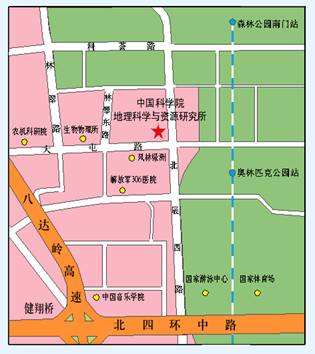 如果您乘坐城铁8号线可在“奥林匹克公园站”下车,从西北出口出来,向西步行200米至中科院地理所即可。