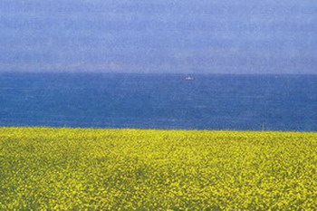 湖区气候较适宜种植油菜、青稞等作物,我们不时看到一大片一大片盛开黄花的油菜田从窗下掠过,它们点缀在绿色原野上,给这稍显单调的青海湖区增添了些许娇媚秀丽光彩,让人赏心悦目,宛若来到了江南田野。