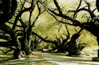 另一绝佳处乃是距湖不远的一片柳树林。几十棵数百年树龄的粗大柳树不仅枝干旋转、扭曲,而且它们的躯干身姿也长得怪模怪样的,或倒卧、或歪斜,千姿百态,各不相同,非常引人注目,常常招来众多游人在这片怪柳丛中来回穿梭、摄影留念、流连忘返。这种柳树的学名叫康定柳,它们长得如此怪异,虽然在别的地方也可能发见得到,但都很难看到像龙王潭这里长的那么怪异。所以,凡初到拉萨来的外地游客,若不到宗角禄康公园来看看这片怪柳林,那将是莫大的遗憾。