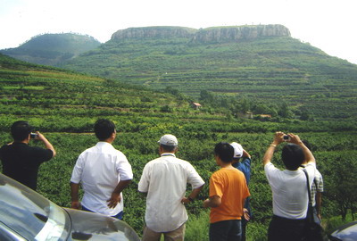 科研人员在山东省蒙阴县岱崮镇考察崮