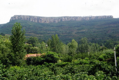 卧龙崮,海拔480米,因崮狭长,极似卧龙而得名,岩层厚度20~23米
