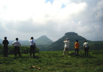辞海上言:崮是一种顶平、坡陡的地貌类型。但是以前没有引起学术界的重视,以致地貌学词典看不到“崮”这个词。崮应该是方山地形一种,而方山地形一般以玄武岩方山为典型。南京附近的玄武岩方山、台湾澎湖列岛的鸡笼屿、桶盘屿就是很典型的代表。今天我们在齐鲁大地考察和研究崮,尤其是以岱崮镇为代表的、素有岱崮天下奇之说。岱崮是一个地名,一个镇的名字,是以反映崮地貌在这里集中、典型之地。它属于山东省蒙阴县的沂蒙山区,著名的淮海战役的孟良崮一战就在其附近。而说起岱崮这个名字,齐鲁大地素有沂蒙72崮,意思是它众多的意思,在这众多崮之中,据统计有30崮集中分布在岱崮镇周围。2007年8月,以中国科学院地理科学与资源研究所张义丰教授为首的研究人员,以岱崮镇为中心,研究了岱崮的这类地貌及其保护和开发问题。笔者有幸应邀去鉴定和目睹,兹稍作介绍。