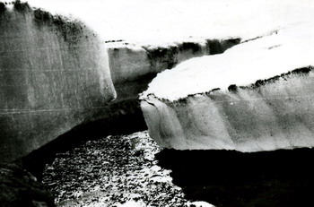 但在羌塘也有喝上甘美清泉的时候。6月24日下午,我们行进在蒂让碧错湖滨滩地上,那时虽然凉风习习,寒意未尽,但高原已近“盛夏”,草原刚刚褪去枯黄的外衣,换上嫩绿的新装,显得格外清新爽目。忽见前方不远的山洼里有一个像山谷冰川那样的物体在阳光下闪烁着,等我们策马赶到跟前,发现那是一个长约百米,宽20~30米、厚仅半米左右的白玉般盾状冰体,静静地躺在宽浅的河床里。它那洁白晶莹的冰面上,由于阳光射融的结果,形成许多窟窿眼。仔细观察,其表层冰体为白色粒雪状冰晶组成,并且含有很多细小气孔泡,表层以下则为晶莹透明的坚冰。在这块盾状冰体中央有一道宽1米左右的“之”字形大裂缝——溶蚀沟。我钻进沟里,见那两侧平滑陡直的冰体断面上有许多条色泽深浅不一、暗淡相间的水平层理。这种类似高山冰川的层埋构造表明其 “冰冻三尺,非一日之寒”,冰体的形成显然经历了冻融交替的反复过程。溯沟而行,没走多远就有淙淙流水之声传来,循声索源来到一处陡峭岩壁前,只见一泓清泉不断地从岩隙石缝处涌出,此即这块巨大冰体的水源出处了。原来,羌塘高原气候寒冷,特别是冬季,天寒地冻,气温常在摄氏零下几十度,以致泉水涌出后,流不多远就凝冻成冰。随着泉水源源不断涌流,冻结过程也在不停地进行着,日积月累,就在泉眼下方低洼河床里形成面积达几百或几千立方米的冰盾或冰舌——我给它起名为泉冰。当然,它与我们常见的高山冰川有着本质的区别。高山冰川的补给来源是大气降水(雪),不是来源于泉水;在规模上,泉冰跟高山冰川相此,可谓“小巫见大巫”,简直微不足道!还有,高山冰川相对稳定,有千年冰山之谓,而泉冰则有明显季节变化,冬季冻结、增长,夏季消融、缩小,甚至销形匿迹,无影无踪。就拿眼前这条规模较大的泉冰来说,它就正在逐渐消融,中间的溶蚀沟日渐扩大,原来的整块冰体已被许多纵横交错的小溶蚀沟分割成无数小块了。可以预料,过不了多久,这个泉冰就会消失。