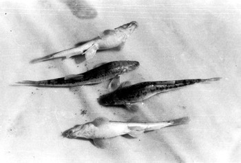 1976年6月中旬,海拔4860米的昂达尔错是我们离开色瓦之后遇到的第一个湖泊,它由东西两个相通的小湖组成,西湖比东湖要大数倍,两湖合计面积为41平方公里。两湖之间隔着一道宽约200米,长7~8公里,高7米左右的沙堤。从堤顶部至湖边可清晰看到十多条水痕遗迹,记载着近期湖泊退缩的历史,并可依此推断东西两湖曾经是个统一的湖,后因气候趋干和湖水蒸发,遂使湖面下降并解体分离为两个湖,湖水矿化度也相应增高。如今西边大湖已演变成盐湖,每升湖水含盐量达357克,每年暖季时常有居民来此采盐;湖中既无水草,也无鱼类。东边小湖则因有一条小河注入,矿化度远低于西边湖,每升湖水含盐仅2克多一点,属咸水湖,且有鱼类等水生生物。发现湖中有鱼,我们的鱼类专家老陈又来了劲,他提着沉甸甸的尼龙丝渔网走到湖边再次大显身手,连撒了几网便捕捞到几十尾诸如裸鲤、裸裂尻鱼和高原鱼等高度特化的裂腹鱼类。它们明显地不同于现今生活在羌塘四周较低河湖水域中较原始的裂腹鱼类。最突出的是它们身上的鳞片已退化,仅在臀部保留有几行大鳞,所以又都统称为无鳞鱼;其次是缺失触须,而较原始的裂腹鱼、重唇鱼等都还保留1至2对触须。