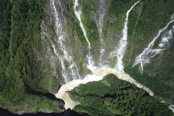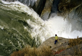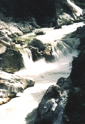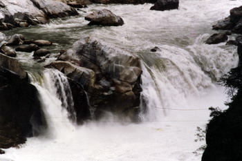 由于山体岩层的变化和水流的强烈集中的切割作用,大峡谷在这一段变得异常狭窄,坡降最陡,极易形成瀑布,这也是其能量释放所必然采取和出现的一种形式。沿第二个瀑布顺江而下,藏布两岸形成高耸入云的笔直绝壁,肉眼望去,雅鲁藏布江在这一段形成了一条白色的小条带;从第二瀑布以下三角形池子往下100多米之后,又形成了连续4个小瀑布,落差都在5米左右,4个小瀑布的总落差大约为30米。据专家分析介绍,这些小瀑布是泥石流或山崩堆积的石头造成的。从第一个瀑布到最后一个小瀑布,雅鲁藏布江水面竟下降了100多米,也就是说这段峡谷河段中的瀑布群总落差在100多米吧!