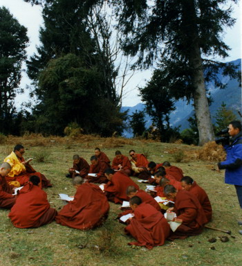 离波密县,过扎木大桥急赴帕隆藏布南岸坐落在冰碛平台上的多东寺喇嘛庙,希望能拍摄到喇嘛们在大佛殿内诵经做佛事的情景,不想赶到那里,大庙竟空空如也,一问才知这天喇嘛们都放假回家做农活去了,我们大为扫兴,只好调转车头直奔波得藏布而去。