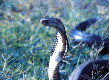 考察回来,我们专门拜访了中国科学院成都生物研究所两栖爬行动物研究室主任赵尔宓教授,他是这方面的权威人士。赵教授告诉我们说:西藏墨脱地区有无眼镜王蛇,一直是个疑案。1962年中印边境自卫反击战中,我边防部队曾在墨脱希让以下印占区的一个军事医院内缴获一条眼镜王蛇的标本,但也不敢肯定是否就是当地产的。这次科学考察队捕到了眼镜王蛇,此案就清楚无疑了,而且尤其可贵的是这是一条营巢正在孵卵的眼镜王蛇。历史上只知道20世纪初有一对西方旅行者夫妇见过做了叶窝的眼镜王蛇,以后一直只有人工饲养的眼镜王蛇孵卵情况的报道,这次我们能看到天然情况下正在孵卵的眼镜王蛇,创造了新的纪录,当时若能对眼镜王蛇进行几天生态特点的自然现场观察,那将获得震惊世界的宝贵资料。