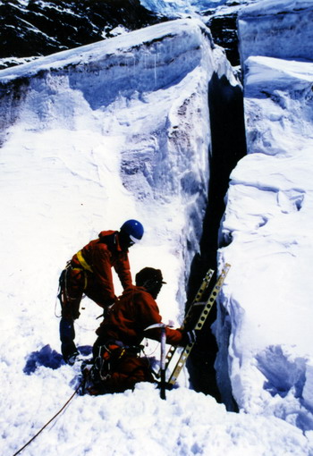 架梯桥通过乃彭峰上的冰裂缝