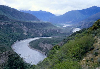 大峡弯进口两侧,北侧的加拉白垒峰与南侧的南迦巴瓦峰,高耸对峙,谷底奔腾的急流携带着滚滚的巨石,呼啸翻滚,轰声隆隆。从空中看去,犹似急泻百里的瀑布,其壮观程度令人瞠目。它蕴藏着多么丰富的水力资源啊!大峡弯下段近南北向河段,为印度洋暖湿水汽北上进入高原的主要通道,对高原内部的气候及通道上生物的繁衍集中、迁徙变异有着决定性的影响。神山和奇水配合构成的高山峡谷,是那样的雄伟峻峭,幽深险急,形成地球上地形发生转折变化最急剧的地方。从高山顶到峡谷底,巨大高差的地形由低到高,形成众多垂直方向上的自然带,不同高程的自然带内,蕴藏着十分丰富的自然资源。