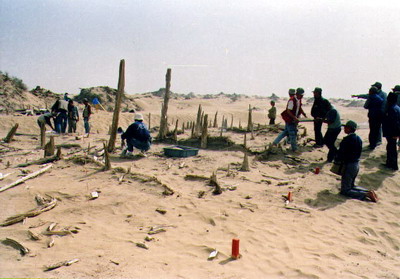 简要说明:这是在塔克拉玛干大沙漠腹地中日联合尼雅古遗址考察中考古发掘场景,右侧跪地记录者为我所历史地理学家王守春教授。尼雅古遗址是古丝绸之路上西域36国的精绝国遗址。