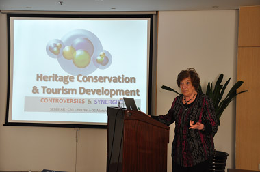 在聘任仪式结束后,Verbeke教授作了题为“Heritage Conservation and Tourism Development: Controversies and Synergies”的报告。她对遗产的概念,遗产保护的内容、原因、对象和方法,遗产资源的旅游潜力和基于研究的旅游发展等方面作了系统的阐述,认为未来研究主要集中在对保护与发展矛盾的识别、潜在发展的分析、政策制定与能力建设、遗产地旅游管理中的重要内容景观与价值的研究等方面。