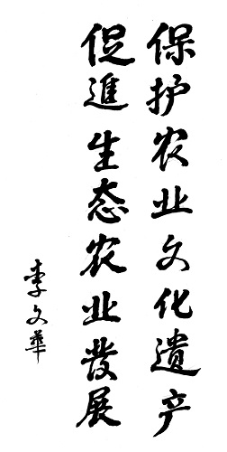 我们迎来了重要农业文化遗产保护的春天,我国的重要农业文化遗产的发掘、保护、利用、传承,必将为实现中国梦、为“让农业成为有奔头的产业,让农民成为体面的职业,让农村成为安居乐业的美丽家园”作出应有的贡献。
