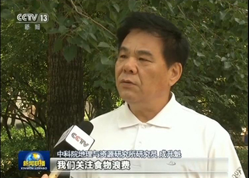 中国科学院地理科学与资源研究所成升魁研究员及研究团队成员王灵恩、刘晓洁博士先后接受央视记者访问。5月27日,成升魁研究员在接受《新闻联播》采访时说:“我们关注食物浪费,不仅仅是浪费几粒粮食的问题,更重要的是浪费粮食的背后,他付出了大量的资源、环境、生态的这种无谓的消耗。” 6月1日,《新闻联播》报道:中科院的一项调查分析了各种宴席浪费的主要原因,包括菜品质量难以令人满意、某些地方传统习俗对菜品数量要求过多、盲目点菜导致菜品数量远大于消费量、攀比心理较重、讲究排场等等。
