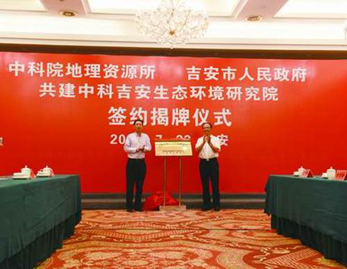 地理资源所与吉安市人民政府共建中科吉安生态环境研究院签约揭牌仪式。