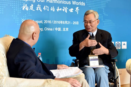 2016年8月,在第33届国际地理大会(北京)上,陆大道(右)接受国际地理联合会专访。
