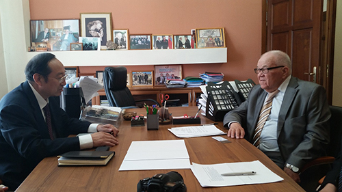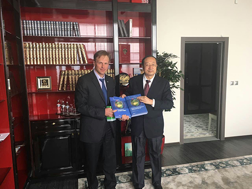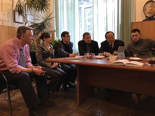 董锁成与俄罗斯科学院院士Nicola Dobretsov交流