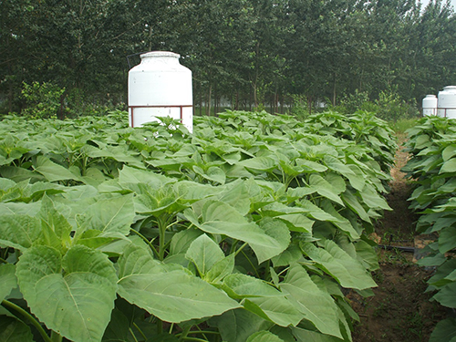 5.5gL咸水滴灌试验油葵生长状况(天津静海试验基地,2008年7月23日)