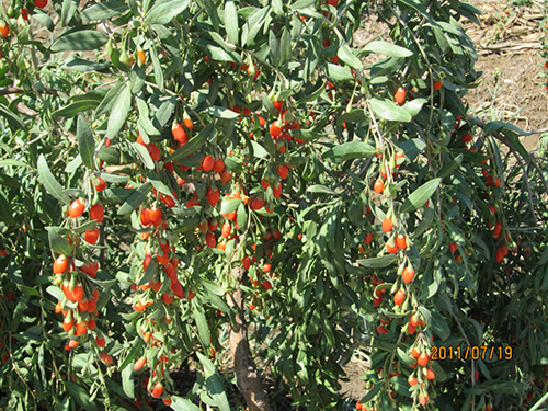 7.5gL咸水滴灌试验枸杞生长状况(宁夏平罗灵沙试验基地,2011年7月19日)