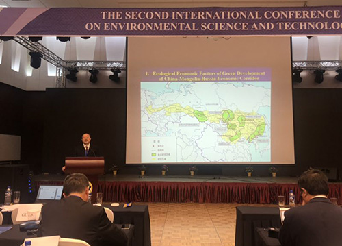 6月13-14日,应蒙古国科学院、蒙古国文教与科技部、蒙古国自然环境与旅游部邀请,科考队参加了第二届环境科学与技术国际大会,董锁成作了题为“Research on the Eco-Environmental Risks in China-Mongolia-Russia Economic Corridor and Green International Cooperative Mode”报告,提出中蒙俄经济走廊沿线生态风险加大,三方共建绿色经济走廊的建议,受到与会者高度认同;中方张树文、李生宇、岳天祥、李胜功、金良、姚予龙、李泽红、张雪芹、王平、白可喻、李飞、程昊、颜凤芹、王昭生、卜晓燕、郭晓佳、郑吉等及俄方Tcogto Bazarzhapov、Tamir Boldanov等分别就土地利用与土地覆被、荒漠化治理、草原建设、林草资源合作、环境监测与管理、牧业合作、区域发展等方面作了主题报告,引起了会议代表热烈反响;来自中国、蒙古、俄罗斯、日本、德国、韩国、加拿大、印度等10多个国家和地区200余位学者参加了会议。国家科技基础资源调查专项连续组织几次大型蒙古国联合科学考察与合作研究,取得了显著进展。为表彰对蒙古国资源利用、环境保护与可持续发展事业做出的突出贡献,蒙古科学院向董锁成研究员颁发了国际合作突出贡献奖荣誉证书。地理资源所郑吉博士生获得大会唯一的优秀论文报告奖。