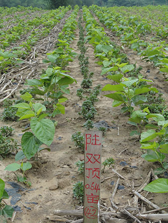 他免费领回了培育好的蜈蚣草苗和东南景天苗,在科研、农业、环保部门技术人员的培训和指导下,与桑树、甘蔗、玉米、红麻等套种在一起,并按照要求,撒上了修复剂。
