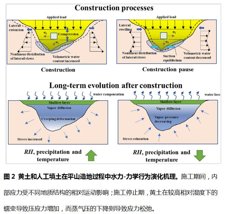 黄土高原的人口增长和城市化带来大规模平山造地工程。在重大黄土挖填工程中,天然黄土与深层填土形成人工地质界面;理清其内部的水力-力学行为演化过程,对工程稳定性分析至关重要。