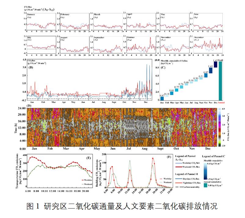 为了解决上述科学问题,本文以通量贡献区方法识别的二氧化碳排放空间范围为基础 ,“自上而下”碳通量观测和“自下而上”主要碳源排放核算相结合,构建了二氧化碳通量与主要碳源汇过程动态分析空间模型。从制定适应性策略实现当地政府设定的碳中和目标视角,评估适应性策略下实现城市街区微观尺度“碳中和”的可能性大小。基于高时空分辨率的人文和自然多要素二氧化碳排放监测和模拟数据,进行了基准情景、交通为导向的减排情景、植被为导向的减排情景以及多要素联合情景的城市街区微观尺度“碳中和”研究。模拟结果表明,2050年四种情景下的总二氧化碳排放(kg CO2 m-2 year-1)相较于2019年的现状将大幅下降,分别为7.64、2.32、6.11和-1.27。该成果为高度城市化地区制定符合实际且成本较低的二氧化碳减排政策提供基础科学数据和理论依据。