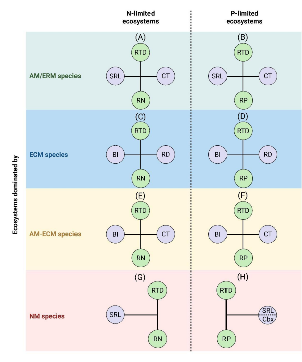 图2基于菌根类型与养分限制类型的根经济空间多元理论框架体系