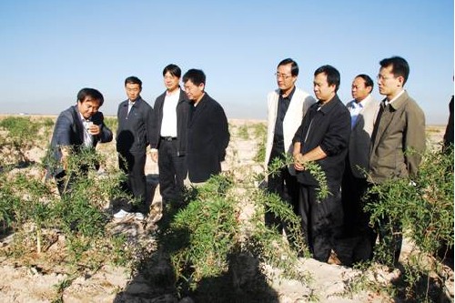 李家洋(左二)考察枸杞红枣滴灌高效种植技术集成研究与示范基地