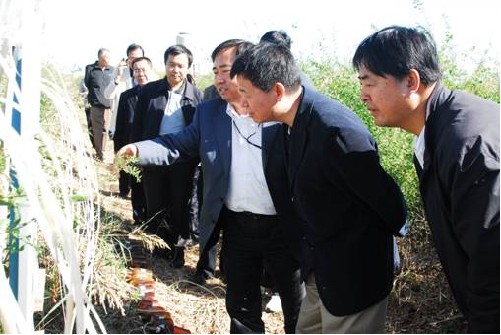 李家洋(右二)考察重度盐碱地咸水滴灌开发利用试验研究基地