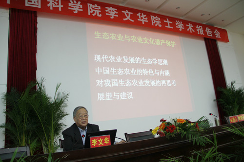 10月25日下午,李文华院士为凯里学院的师生做了题为“生态农业与农业文化遗产保护”专场学术报告。李文华院士从现代农业发展的生态学思潮、中国生态农业的特色与内涵、对我国生态农业发展的在思考、,以及展望与建议等四个方面进行深入浅出的阐述,受到凯里学院广大师生的欢迎。