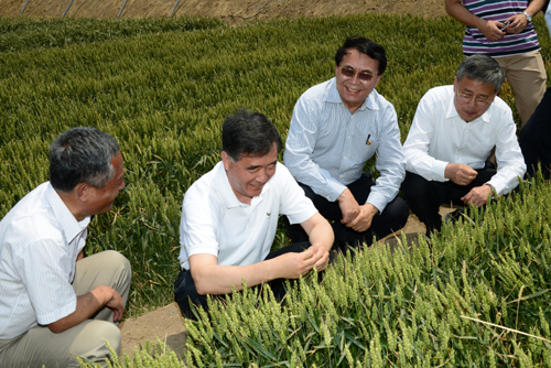 汪洋(左二)、白春礼(左三)、郭树清(左四)实地查看小麦长势