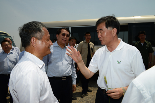 5月23日,国务院副总理汪洋来到“渤海粮仓”科技示范工程山东项目区滨州市无棣县万亩盐碱地改造试验基地,现场考察了中国科学院的农业科技工作。汪洋听取了“渤海粮仓”山东项目区首席专家、中国科学院地理科学与资源研究所研究员、禹城综合试验站站长欧阳竹的汇报,仔细观看了“渤海粮仓”科技示范工程的相关技术产品、农机具和农田关键要素采集系统等,并走进田间地头,实地查看了耐盐小麦品种“小偃81”和“小偃60”的长势,详细了解了治理改造过程和效果。汪洋对“渤海粮仓”科技示范工程所取得的成效给予了充分肯定,对一年多来,在有关部委和地方政府的支持下,中国科学院组织多个研究团队进行科技攻关,通过选育集成耐盐优质高产小麦玉米品种、采用微生物有机肥降低盐碱含量等技术进行盐碱地改造,在促进粮食增产增效上取得重要阶段性成果表示赞赏,希望进一步完善技术体系和工作机制,在更大范围推广提升。