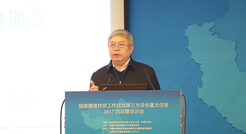 会上,评估专家组组长、中国科学院地理科学与资源研究所研究员刘彦随介绍了2017年国家精准扶贫工作成效第三方评估工作方案,从评估依据与基础、指导思想与原则、评估工作组织、评估技术方法、创新评估方式等五个方面详细介绍了2017年第三方评估的主要任务。