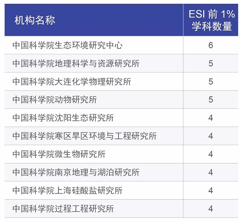 拥有4个及以上ESI前1%学科的中科院院属机构