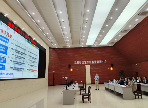 白春礼听取了项目10首席陆锋关于“生态文明建设地理图景模拟”研究进展和成果示范应用情况的汇报,实地考察了成果应用场景及成果在武夷山国家公园智慧管理平台业务化运行中的应用成效,与部分研究人员进行了座谈交流。