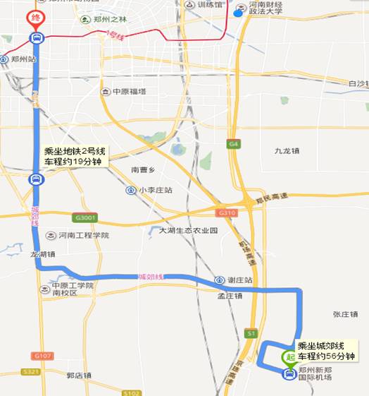 地铁:新郑机场站上车,乘坐城郊线(南四环方向),南四环站下车,乘坐地铁2号线(刘庄方向),紫荆山站下车,F口出,步行300米到达河南饭店。