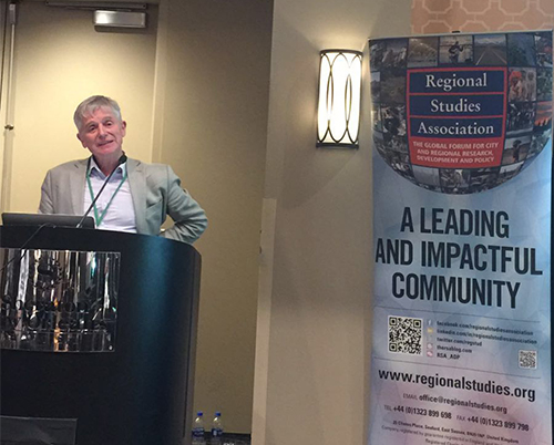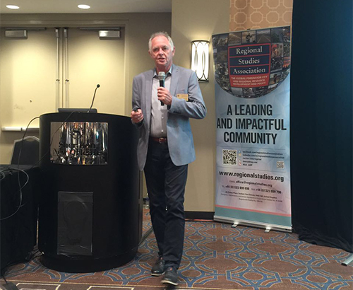 本次ADP年度报告分会场由RSA中国分会、AAG中国地理学组和AAG 亚洲地理学组(Asian Geography Specialty Group, AGSG)组织主办。为探讨全球化的局限以及南方国家城镇化过程中所面临的挑战等问题,本次ADP年度报告分会场邀请AAG前主席、ADP编委、加利福尼亚大学洛杉矶分校(UCLA)Eric Sheppard教授发表题为“The Raggedy Edges of Globalizing Capitalism:Thinking Through Jakarta”的主题报告。ADP两位创刊主编、中国科学院地理科学与资源研究所刘卫东研究员和Michael Dunford教授,RSA首席执行官Sally Hardy女士、加拿大英属哥伦比亚大学Trevor Barnes教授、加利福尼亚大学洛杉矶分校Helga Leitner教授、新加坡国立大学Henry Yeung教授、加利福尼亚大学洛杉矶分校Cindy Fan教授、河南大学苗长虹教授、中国科学院南京地理与湖泊研究所陈雯教授等70余位国内外专家学者参加了此次报告分会场。