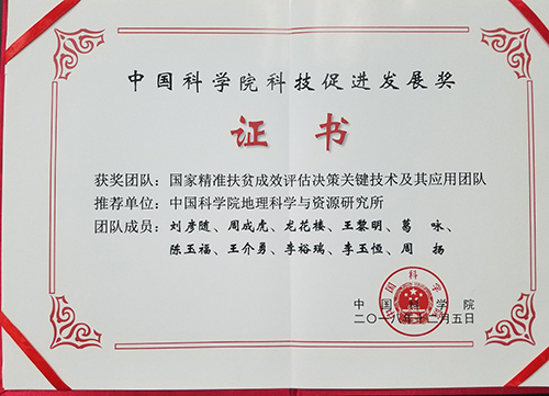 地理资源所“国家精准扶贫成效评估决策关键技术及其应用”团队荣获“2018年度中科院科技促进发展奖”