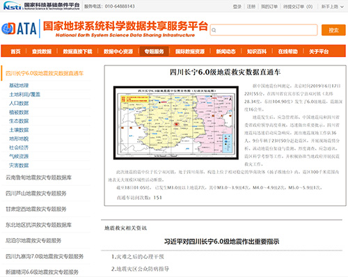 国家地球系统科学数据中心开通“四川长宁地震救灾数据直通车”