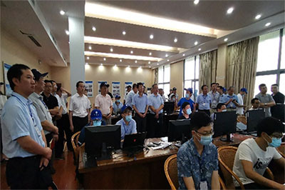 周学文一行考察了鄱阳湖模型试验研究基地模型大厅,了解了项目团队无人机、系留浮空器平台性能、载荷类型、遥感监测能力等具体情况;在项目主控中心观看了无人机组网管控系统、任务智能规划、大数据平台、洪涝灾害信息智能提取、无人值守智能机库等系统演示,及无人机实时飞行数据传输技术展示。