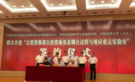 2022年6月28日,由中国地质调查局自然资源综合调查指挥中心、中国科学院地理科学与资源研究所、中国地质大学(北京)联合共建的“自然资源部自然资源要素耦合过程与效应重点实验室”正式揭牌,来自自然资源部、中国地质调查局、中国科学院地理科学与资源研究所、中国地质大学(北京)及多家相关单位的领导和与会代表齐聚一堂,共同见证了“自然资源要素耦合过程与效应重点实验室”的成立。