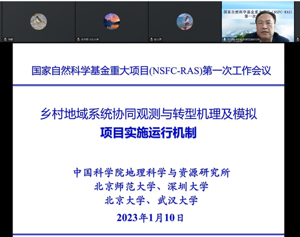 为学习贯彻国家自然科学基金重大项目管理办法,建立健全重大项目组织管理机制,研究筹备重大项目启动和细化落实重大项目年度任务,项目组于2023年1月10日主持召开了重大项目第一次工作会议。国家自然科学基金委员会地球科学部地球科学一处熊巨华处长、地理资源所科研处崔璟副处长、项目负责人、课题负责人,以及中科院地理资源所王黎明研究员、范泽孟研究员、李裕瑞研究员、王介勇研究员,北京师范大学刘素红教授,北京大学刘承芳教授、罗仁福教授、张波教授、冯健研究员,武汉大学何建华教授、刘殿峰教授等研究骨干70余人参加了会议。