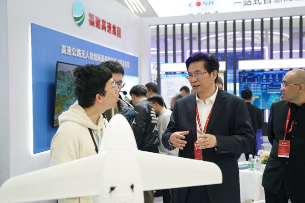 2023年3月30日-31日,由中国公路学会主办、福建省高速公路集团有限公司、福建省公路学会以及华为技术有限公司协办、《中国公路》杂志社、《中国交通信息化》杂志、福建省高速公路学会承办的第二十五届中国高速公路信息化大会暨技术产品博览会在福州国际海峡会展中心举办。以“创新·融合·高质量发展”为主题,近300余家交投、高速集团及厂商、系统集成商等参加了展览展示。由中国科学院地理科学与资源研究所与福建省高速公路集团有限公司共同承担的福建重大科技专项“福建高速公路无人机组网遥感智能巡检关键技术”项目参加了展览,展出尾座式无人机、无人机边缘计算套件、高速公路无人机组网巡检系统、病害AI检测算法、拥堵AI检测算法、高速公路数字孪生底座等多项成果。福建交通运输厅副厅长一级巡视员邱准、福建省高速公路集团有限公司党委书记董事长陈岳峰等亲临现场了解成果详情。项目展出的成果吸引了6000余人次参观。腾讯、百度、华为等厂商代表对项目的创新成果表达了高度关注,来自行业学会、其他省高速集团相关部门与项目人员进行了深度沟通。