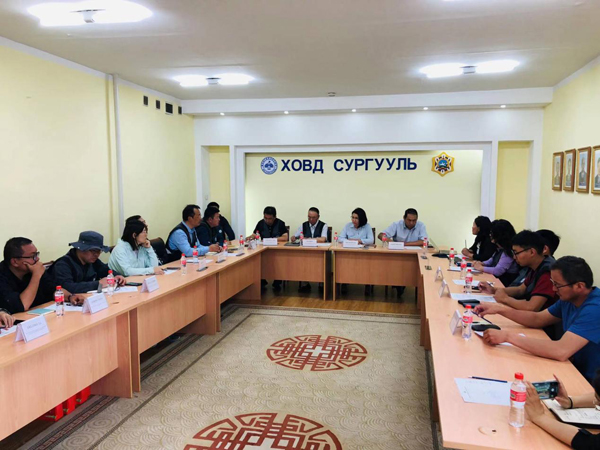 首先,沈镭感谢了蒙古国立大学文理学院地理系主任巴图青格勒教授为此次考察前期准备提供的帮助和来自蒙古国立大学的4位老师全程参与蒙古国内的野外艰苦工作,之后介绍了中国科学院地理科学与资源研究所和中国自然资源学会的基本情况,孔子学院蒙方院长钢朝吉女士和高志刚副校长也分别介绍了蒙古国立大学科布多分校和新疆财经大学,钢朝吉指出,蒙古国立大学科布多分校已有几十年的汉语翻译人才培养经验,与中国高校在资源环境方面有很多交流,也欢迎有共同兴趣的中国学生前往该校交流学习。高志刚指出,希望两校在跨境贸易等方面加强交流合作,并欢迎科布多分校领导和老师访问新疆财经大学。科布多分校教务处钢铁木尔处长也进行了发言,他表示非常高兴能够与来自中国科学院地理科学与资源研究所和新疆财经大学的考察队一起座谈交流,提出了未来合作意向,表示蒙古国立大学科布多分校位于蒙古西部地区,学校长期研究阿尔泰山资源、生态、历史、文化,蒙古国政府提出了蒙古国2025愿景、口岸复兴政策等,希望未来双方能够在相关政策支持下推进阿尔泰山跨境资源、生态、历史、文化等方面合作研究。