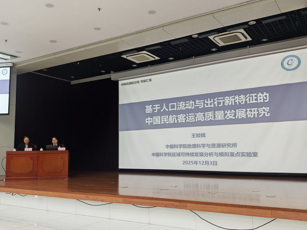 2025年12月3日,中国民用航空局(以下简称“民航局”)运输司组织召开专题会议,邀请地理资源所王姣娥研究员以“基于人口流动与出行新特征的中国民航客运高质量发展”为题进行交流研讨。民航局马兵副局长出席会议,运输司、机场司、空管办、运行监控中心等相关部门处级以上干部及相关业务负责同志参会。中国民航科学技术研究院、中国民航管理干部学院、民航局清算中心等单位负责同志及相关业务部门负责人参会。会议由民航局运输司徐青司长主持,地理资源所黄洁研究员、陈卓助理研究员参会。